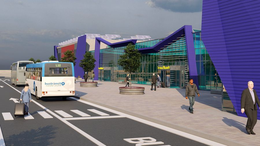 In zona din fata noului terminal se va realiza o suprafata pietonala, pentru stationarea pasagerilor inainte de intrarea in terminal sau la iesire. In zona de nord-vest a obiectivului, se va lua in considerare viitorul proiect de extindere a liniei de tramvai pana la aeroport si se va coordona amenajarea exterioara cu respectivul proiect.
