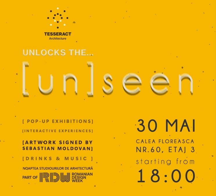 Tesseract Architecture, singurul studio de arhitectura specializat in domeniul medical din Romania si unul dintre putinele de acest tip din Europa, isi deschide, anul acesta, biroul pentru colegii arhitecti, prieteni, pasionati de arhitectura si publicul larg, in cadrul Noptii Studiourilor de Arhitectura, un eveniment Romanian Design Week, ce are loc joi, pe 30 mai, incepand cu ora 18.00. In cadrul evenimentului, denumit "Tesseract Architecture unlocks the [un]seen", pasionatii de arhitectura vor avea ocazia sa cunoasca echipa de arhitecti a Tesseract, dar si sa vizioneze expozitii ale proiectelor semnate Tesseract, interactiuni VR (realitate virtuala), expozitii pop-up care ilustreaza pasiunile arhitectilor din echipa Tesseract, dar si o instalatie de arta creata de artistul Sebastian Moldovan.