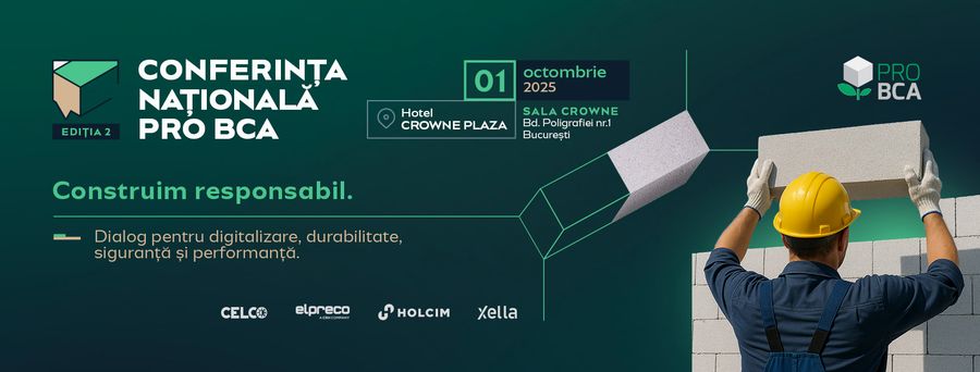 Organizatia Patronala a Producatorilor de BCA anunta organizarea celei de-a doua editii a Conferintei Nationale PRO BCA, un eveniment de referinta pentru industria constructiilor din Romania. Manifestarea va avea loc pe 1 octombrie 2025, la Hotel Crowne Plaza din Bucuresti, si va reuni reprezentanti ai industriei materialelor de constructii, arhitecti, dezvoltatori, autoritati si lideri de opinie.Conferinta isi propune sa ofere un cadru amplu de dialog si analiza pe teme esentiale pentru viitorul sectorului, cu accent pe inovatie, sustenabilitate si digitalizare, trei directii care schimba fundamental modul in care sunt gandite, proiectate si realizate constructiile moderne.