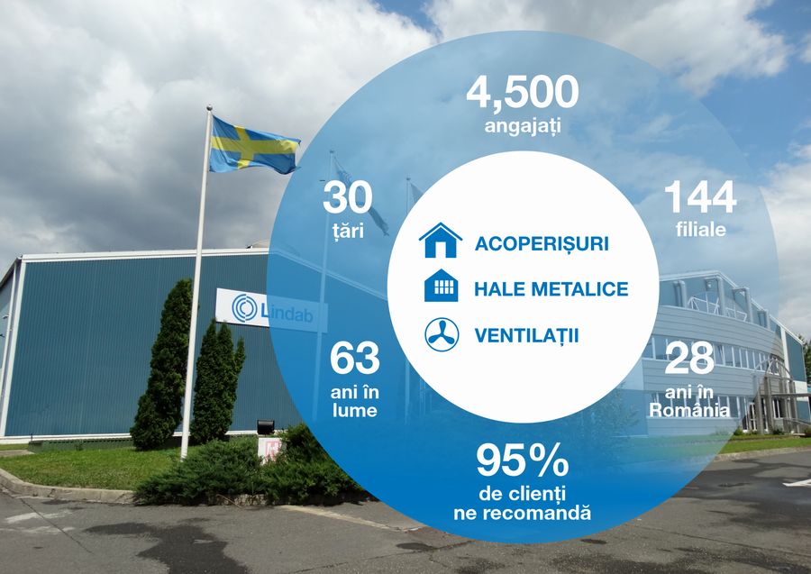 Lindab dezvolta, produce si promoveaza produse si solutii moderne pentru constructii civile si industriale si sisteme de ventilatii pentru un climat interior imbunatatit, bazat pe un concept si o strategie proprie de afaceri. Cu o experienta de aproape 60 de ani la nivel international si prezent de aproape 3 decenii in Romania, grupul se bazeaza pe oameni, pe care ii considera resursa cea mai de pret si care i-au asigurat succesul in toate etapele de dezvoltare si pe toate diviziile de activitate. In prezent, grupul Lindab are puncte de lucru in 30 de tari si un numar aproximativ de 4.500 de angajati. Obiectivele financiare pe termen lung vizeaza o crestere anuala de cel putin 10% la nivel de business si profitabilitate. Din perspectiva sustenabilitatii, Lindab are in focus 5 obiective si activitati: reducerea emisiilor de CO2, motivarea angajatilor, diminuarea numarului accidentelor de munca, evaluarea furnizorilor si folosirea mijloacelor de transport mai prietenoase cu mediul. Toate acestea pot fi obtinute prin urmarirea a trei directii importante, si anume dezvoltarea unei afaceri sustenabile, constructia de cladiri sanatoase si reducerea impactului asupra mediului.Istoria Lindab se intinde pe o perioada de peste 60 de ani, cand un mic atelier de tabla a fost infiintat in Lidhult, Suedia, in 1956. Afacerea s-a mutat ulterior la Grevie, pe Peninsula Bjäre, unde AB Lidhults Plåtsindustri a fost inregistrata ca si companie in 1959, avandu-i drept fondatori pe Lage Lindh si Valter Persson. Zece ani mai tarziu, AB Lidhults Plåtindustri a fost redenumita Lindab. Datorita oamenilor si clientilor deopotriva, povestea Lindab merge mai departe si astazi.