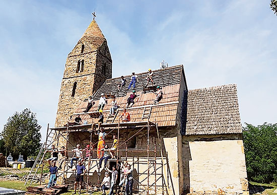 - Aproape 50% din fonduri vin din partea companiilor private in spatele carora se afla oameni de afaceri romani care doresc sa puna umarul la reconstructia identitatii noastre locale si nationale. O alta parte importanta vine din partea Prince’s Foundation din Marea Britanie, fundatie prezidata de Majestatea Sa Regele Charles al III-lea si care ne-a vizitat des pe santiere in ultimii ani. La acest sprijin se adauga contributia unor ONG-uri romanesti si a donatorilor care ne sprijina in campaniile de crowd-funding. Contributia comunitatilor locale si a autoritatilor locale sau judetene se ridica undeva la 15%.