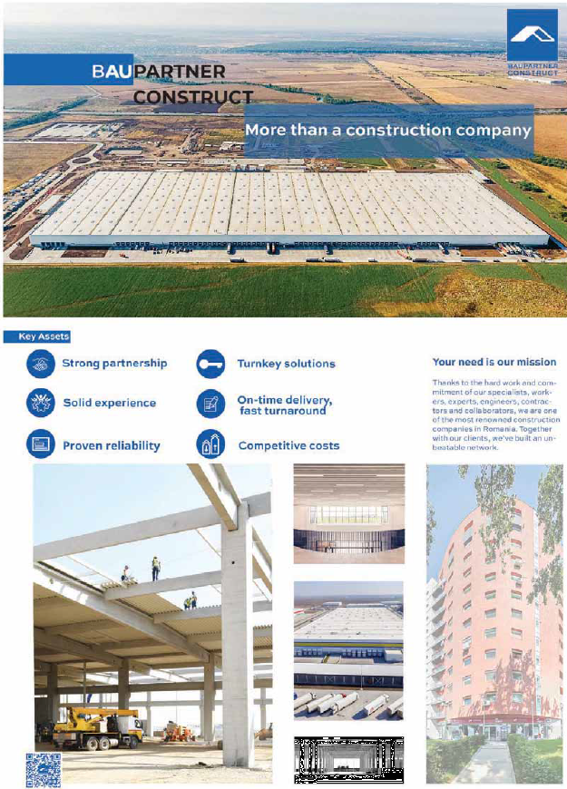 Antreprenoriat in infrastructura, structuri prefabricate, anvelopari cladire, lucrari de finisare, instalatii sanitare, instalatii HVAC, instalatii de stingere a incendiilor, instalatii electrice, lucrari exterioare.