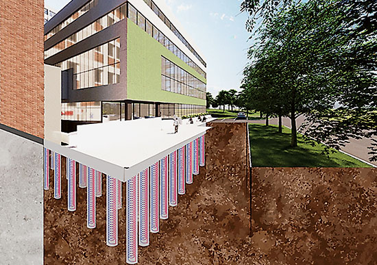 - Solutiile pe care le implementam la GreenTAGS - Structurile geotehnice activate termic - poarta denumirea de structuri geoenergetice, si au dublu rol - structural si energetic. Acestea prezinta anumite particularitati atat in etapa de proiectare, cat si in cea de executie. Pornind de la acest rol dublu, ceea ce le diferentiaza in etapa de proiectare fata de structurile clasice este ca, pe langa solicitarile clasice care genereaza eforturi si deformatii in structurile geotehnice, mai apar solicitari si deformatii suplimentare si in urma activarii termice, ca urmare a ciclurilor de incalzire si racire. Astfel, in aceasta etapa se realizeaza calcule specifice, care iau in considerare efectul suprapus al incarcarilor structurale si al celor termice. Totusi e important de specificat faptul ca activarea termica a structurilor geotehnice nu presupune modificari sau interventii semnificative in ceea ce priveste dimensiunile structurilor geotehnice.