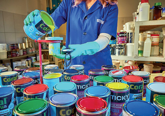 EVOLOR produce vopsele, grunduri, lacuri, diluanti, lavabile, adezivi, tencuieli decorative si coloranti, detinand marcile Sticky si Coral.