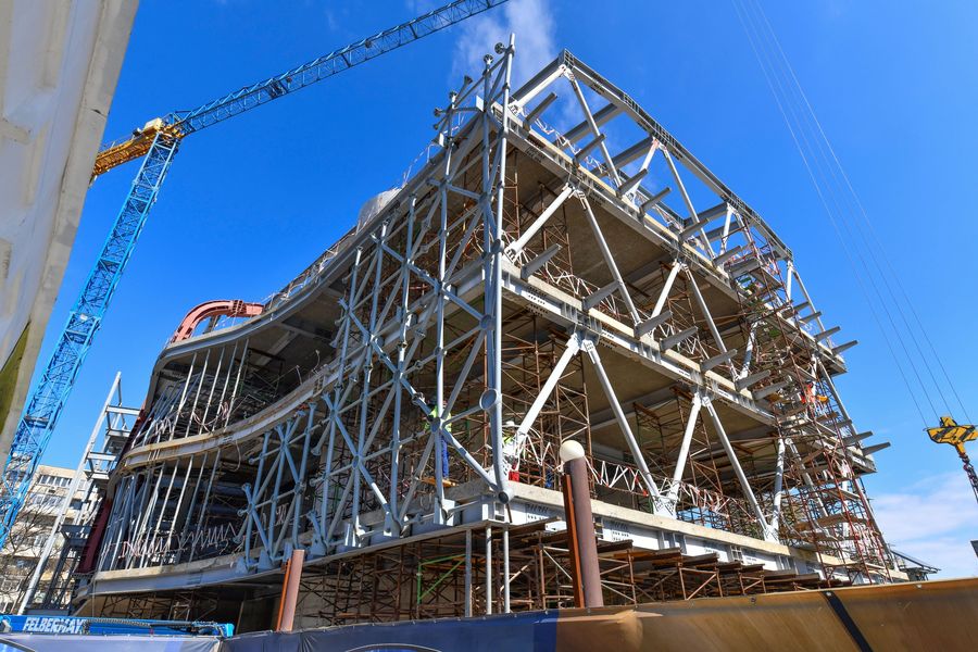 Compania Aedificia Carpati, antreprenor general al lucrarilor de finalizare a Centrului Cultural Favorit, a inceput etapa de inchidere a structurii noii cladiri. In perioada aceasta, inginerii si muncitorii monteaza invelisul exterior, pe care ulterior se va pune invelitoarea de titan zinc, a transmis Primaria Sectorului 6. Acest invelis este ca o panza uriasa de metal, ce serveste drept suport pentru urmatoarele materiale. Este format din 240 de panouri de forme si dimensiuni diferite, care trebuie sa se imbine si sa se alinieze cu o precizie milimetrica. Fiecare panou, la randul lui, cantareste intre doua si patru tone si e format din tevi metalice."In acest moment, montam elementele metalice spatiale - axonometrie exterioara - coaja 1, axe 1-5/A-E", spune Cristian Jarcau, seful de santier.
