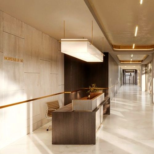 Lobby-ul Nordului 50 va reprezenta un spatiu-emblema: cele doua cladiri sunt unite de un corp de legatura spectaculos, cu un design ce evoca atmosfera unei sere contemporane - o oaza de lumina, verde si liniste pentru rezidenti si vizitatori, chiar din primul pas in ansamblu.