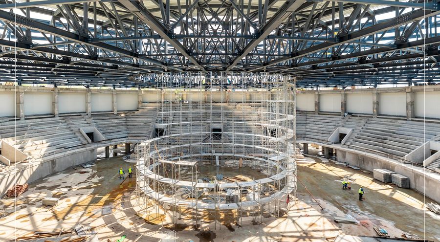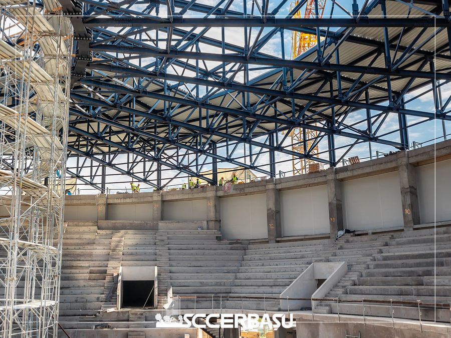 Structura metalica a fatadei noii Sali Polivalente din Tulcea si zidaria din BCA au fost finalizate complet, in continuare, pe santier lucrandu-se la inchiderea fatadelor cu panouri termoizolante si a acoperisului, realizate in proportie de 90%. Totodata, antreprenorul general, compania Constructii Erbasu SA, lucreaza la compartimentarile interioare din gips-carton, la instalatiile de curenti slabi, precum si la cele de incendiu si ventilatii, pentru a asigura functionalitatea completa a salii.Montajul structurii metalice este efectuat de compania specializata Avinci (AG Steel Building & Cladding) din Miroslava, Iasi. Proiectarea obiectivului a fost realizata de compania Selfconsulting.