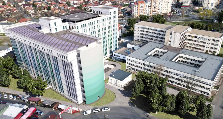 Consiliul Judetean (CJ) Arad a publicat in SEAP anuntul de participare la licitatia pentru constructia noului Complex Maternitate - Pediatrie in spatele cladirii Spitalului Clinic Judetean de Urgenta Arad. Acesta va avea 300 de paturi si va include sectii de obstetrica si ginecologie, neonatologie, chirurgie pediatrica si pediatrie. Contractul de lucrari are o valoare estimata la 436,33 milioane de lei (circa 88 milioane de euro), fara TVA, si o durata de executie de 26 de luni, inclusiv cu dotarile spitalicesti. Conform proiectului, este prevazuta constructia unei cladiri cu 10 niveluri (Ds+P+7E+E8 tehnic) si o arie desfasurata de peste 25.000 mp, amenajarea unei parcari cu 60 de locuri, precum si o unitate de primiri urgente legata direct de UPU Adulti si heliport pe acoperis.