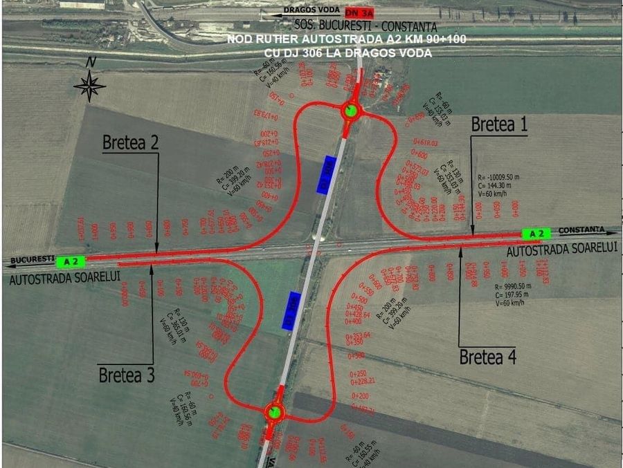 Pentru constructia nodului rutier ce va fi situat la intersectia dintre A2 (km 90+100) cu DJ 306 (Dragos Voda), cu o valoare de 65,73 milioane de lei (fara TVA), au depus oferte trei asocieri:
