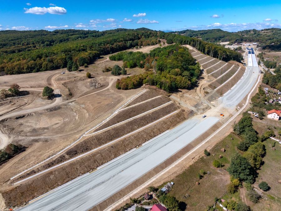 Stadiul fizic al lucrarilor pe cei 9,86 km ai santierului sectiunii 4 Tigveni - Curtea de Arges a autostrazii Sibiu - Pitesti (A1) a depasit 80%. Antreprenorul general, PORR Romania, a inceput lucrarile de constructii in vara anului 2023 si se afla in avans fata de grafic si de termenul de finalizare, prevazut in 2027. La inceputul lunii octombrie 2025, lucrarile de relocare a utilitatilor, sapatura (1,7 milioane mc), structura de rezistenta si umplutura sistemului rutier a tunelului Alina erau finalizate. Conform unui anunt publicat pe pagina de Linked In a PORR Romania lucrarile de umplutura, in volum total de 530.000 mc, au ajuns la un grad de realizare de 96%, iar lucrarile de hidroizolatie la poduri sunt executate in proportie de 90%. Pentru structura rutiera, fundatia din balast (56.000 mc) este finalizata in proportie de 61%, in timp ce stratul de balast stabilizat (14.000 mc) a atins un progres de 30%. De asemenea, lucrarile de asternere a pamantului vegetal pe taluzuri (165.000 mp) sunt realizate in proportie de 55%.![]() Relocarea DN 73C este finalizata la nivel de BAD 22.4, iar a DJ 678A este terminata la nivel de ABPC 22.4. In ceea ce priveste nodul rutier Tigveni, acesta este realizat in proportie de 90% la nivel de ABPC 31.5, iar pentru stratul ABPC 31.5 al autostrazii s-au asternut pana in prezent 3.600 de tone, reprezentand 7% din total. De asemenea, dispozitivele pentru asigurarea scurgerii apelor (28.000 m) sunt executate in proportie de 49%, iar zidurile de sprijin din gabioane (4.600 mp) au ajuns la 89%.