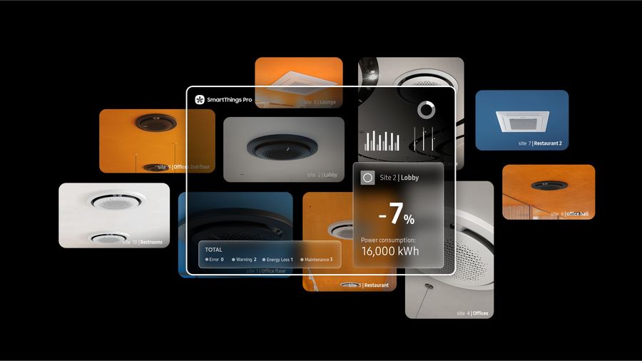 Un exemplu este SmartThings Pro, platforma conectata Samsung ce permite controlul si monitorizarea sistemelor de climatizare si al altor echipamente, intr-o singura locatie sau in mai multe cladiri comerciale. Interfata intuitiva ofera informatii in timp real despre starea dispozitivelor IoT, permitand interventii rapide, control de la distanta si optimizarea functionarii echipamentelor. Rezultatul: reducerea costurilor operationale si cresterea eficientei administrative.