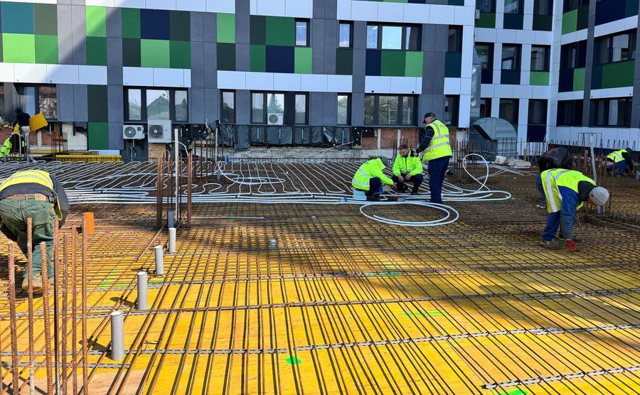 De pe pozitia de contractor pentru lucrarile de instalatii mecanice, unul dintre proiectele importante este ambulatoriul Spitalului Judetean de Urgenta din Oradea - o cladire noua de circa 6.000 mp cu cinci niveluri, unde incalzirea/ racirea se face tot cu sisteme de pompe de caldura, care au ca sursa primara piloti energetici. Este vorba tot despre un concept nou atat pe piata din Romania, cat si pe plan european. Din punct de vedere structural, cladirea avea nevoie de piloti, in care am montat o retea de tevi in spirala cu care extragem energia din sol, pilotii devenind in acest mod energetici. La interior avem incalzire/ racire cu TABS si cu ventilatie cu sisteme de recuperare a caldurii, agreate in mediu medical. In imediata vecinatate, se construieste o parcare subterana si supraterana la care avem contractate toate lucrurile mecanice de stingere a incendiilor.