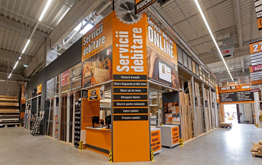 De asemenea, magazinul integreaza cele mai noi masini si tehnologii pentru debitarea lemnului, ceea ce garanteaza rapiditate si precizie in realizarea comenzilor personalizate. Complementar, clientii beneficiaza de gama completa de servicii cu care Hornbach i-a obisnuit: de la confectionarea perdelelor si serviciile de inramare, la surfilarea mochetelor, mixarea a peste un milion de nuante de vopsea, transport si montaj, precum si consiliere dedicata profesionistilor.