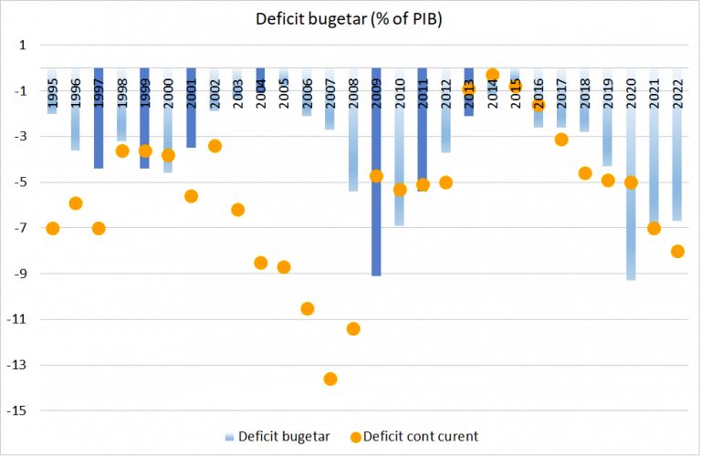 Discutiile despre cresterea economica sau inflatie risca sa arunce in umbra un fenomen care ar trebui sa fie cel putin la fel de preocupant: nivelul la care au ajuns asa numitele deficite gemene. Aceasta sintagma face, de fapt, referire la deficitul bugetar si deficitul de cont curent.Avand in vedere ca un deficit presupune prin definitie un dezechilibru, el va trebui cumva sa fie finantat. Deficitul bugetar este finantat prin imprumuturi, iar deficitul de cont curent poate fi finantat doar prin intrari nete de capital in tara. In ambele cazuri, evolutiile sunt ingrijoratoare si departe de a fi sustenabile. Si toata lumea stie asta deoarece, in cazul ambelor deficite, suntem intr-un déjà vu.