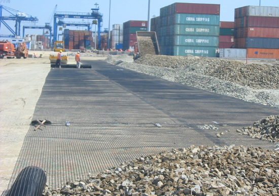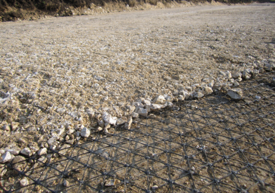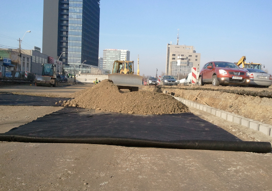 · S-a decis introducerea a 2,2 milioane mp de geogrila triaxiala TriAx® TX150 in fundatia de balast, pentru a forma un strat stabilizat mecanic si geotextil cu rol de filtrare si separare.