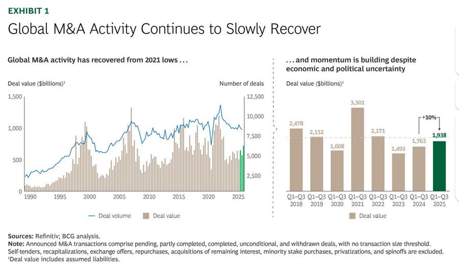 | BCG: Activitatea globala de M&A revine pe crestere in primele noua luni din 2025 |