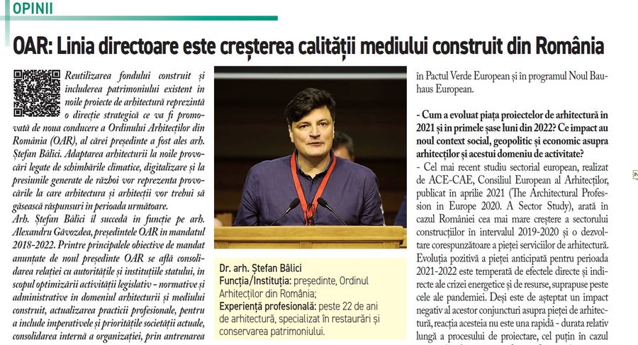 - Dr. arh. Stefan Balici, OAR: Linia directoare este cresterea calitatii mediului construit din Romania