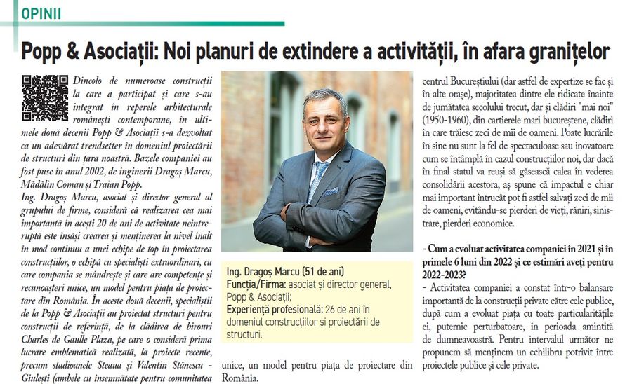 - Ing. Dragos Marcu, Popp & Asociatii: Noi planuri de extindere a activitatii, in afara granitelor