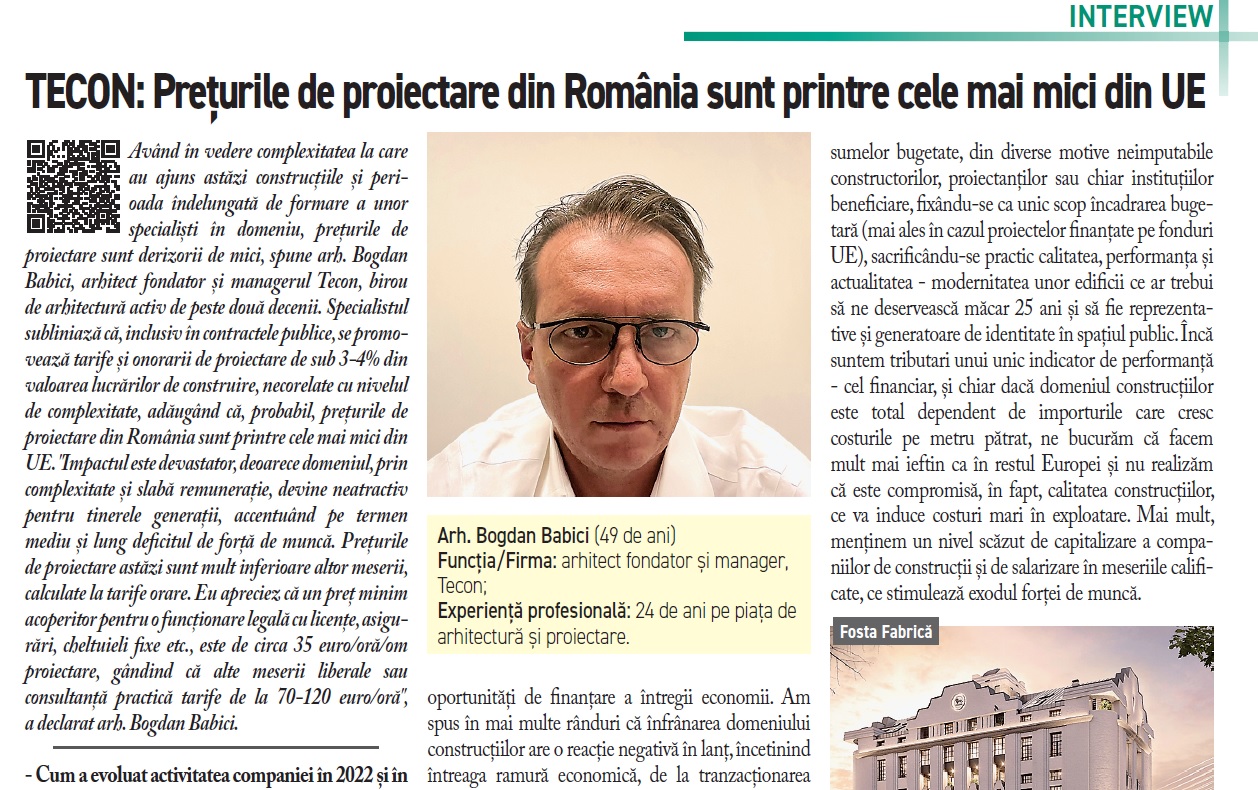 - TECON: Preturile de proiectare din Romania sunt printre cele mai mici din UE;