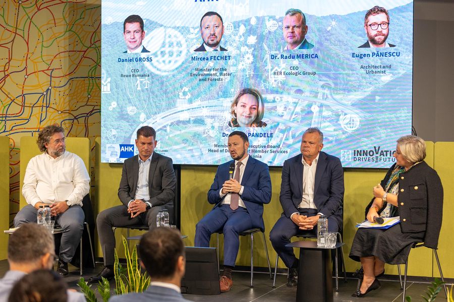 Curatenia localitatilor, aerul respirat, transformarea deseurilor in resursa, adaptarea la schimbarile climatice, constructiile sustenabile, alimentatia pe cat posibil cu produse locale sunt factori care influenteaza calitatea vietii oamenilor, mediul inconjurator, dar si economia. Iata cateva dintre temele dezbatute marti, la intalnirea lunara a membrilor AHK Romania. La discutia moderata de Ilinca Pandele, director departament Membri, au fost invitati: Mircea Fechet, ministrul Mediului, Apelor si Padurilor, Daniel Gross, CEO Rewe Romania, Radu Merica, CEO RER Ecologic Group si Eugen Panescu, arhitect si urbanist."Colaborarea dintre mediul economic, politic si societate este foarte importanta. Numai asa se pot crea solutii sustenabile si strategii si se pot da noi impulsuri pentru viitorul Romaniei. De asemenea, inovatiile si investitiile in domeniul economiei circulare deschid noi linii de business pentru companiile din Romania. Acest lucru va consolida competitivitatea tarii si a Uniunii Europene si va crea noi locuri de munca”, a spus presedintele AHK Romania, Andreas Lier, in deschiderea dezbaterii „Mediu-Clima-Economie. Romania quo vadis ?”.
