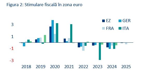 Zona euro se indreapta catre un nou an plin de provocari, politica fiscala si monetara devenind restrictive, pe masura ce ratele reale devin mai limitate, iar guvernele reduc din cheltuieli. Desi analistii se asteapta ca BCE sa inceapa sa reduca ratele la jumatatea anului 2024, rata reala de politica monetara, aproximata ca rata de politica monetara minus inflatia, va creste pe fondul dezinflatiei in curs. Astfel, analistii Allianz Trade preconizeaza ca rata finala reala va fi atinsa in 2024, pe masura ce dezinflatia continua. Prin urmare, politica monetara va avea un impact extrem de restrictiv in viitor. In acelasi timp, dupa stimulentele fiscale acordate ca reactie la pandemia de Covid-19 si razboiul din Ucraina, tarile din zona euro se indreapta acum catre consolidarea fiscala prin adoptarea de masuri bugetare restrictive. Analistii preconizeaza o scadere a stimulentului fiscal din zona euro cu - 0,8% in 2024, putin mai mult decat scaderea de - 0,5% din 2023.Intre timp, Franta demareaza o consolidare fiscala modesta pe fondul unui context macroeconomic dificil. Ministerul Finantelor estimeaza 16 miliarde EUR de economii (aproximativ 0,6% din PIB) pentru a viza un deficit fiscal de -4,4% din PIB dupa -4,9% in 2023. Franta prognozeaza o crestere a PIB-ului real la +1,4% in 2024, o scadere de -0,2 pp in comparatie cu perioada precedenta. Cu toate acestea, cresterea reala a PIB-ului guvernului arata inca optimist in raport cu previziunile analistilor Allianz Trade (+0,7%). Cea mai mare parte a economiilor pe care se va baza guvernul va proveni din eliminarea treptata a scutului tarifar si a altor subventii pentru energie, ceea ce ar trebui sa aduca cheltuieli mai mici cu aproximativ 10 miliarde EUR fata de 2023. In ceea ce priveste veniturile, guvernul intentioneaza sa creasca sau sa creeze noi taxe pentru a finanta tranzitia ecologica, cum ar fi o taxa pe zborurile care pleaca din Franta. Politica locuintelor este, de asemenea, de asteptat sa fie inasprita: de exemplu, creditul fiscal „Pinel” (subventionarea investitiilor in locuinte noi pentru inchiriere) poate fi eliminat, in timp ce domeniul de aplicare al subventiei pentru imprumutul pentru locuinte cu „rata zero a dobanzii” ar putea fi redus.