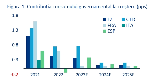 In mod paradoxal, este de asteptat ca derularea treptata a schemei fiscale (revizuita deja in februarie 2023) sa alinieze treptat bugetele viitoare. Astfel, se preconizeaza o diminuare a dinamicii sectorului constructiilor. Datele lunare confirma ca activitatea a inceput sa incetineasca, sugerand o inversare a imbunatatirilor vizibile observate in 2021 si 2022. Productia industriala a scazut cu -2,6% pe luna in medie in primul trimestru al acestui an (comparativ cu o crestere medie de +12,8% in 2022), in timp ce intentiile de angajare in constructii s-au deteriorat recent. In plus, cele mai noi date privind insolventa in afaceri pentru sector coroboreaza stoparea trendului descendent initiat in 2021.