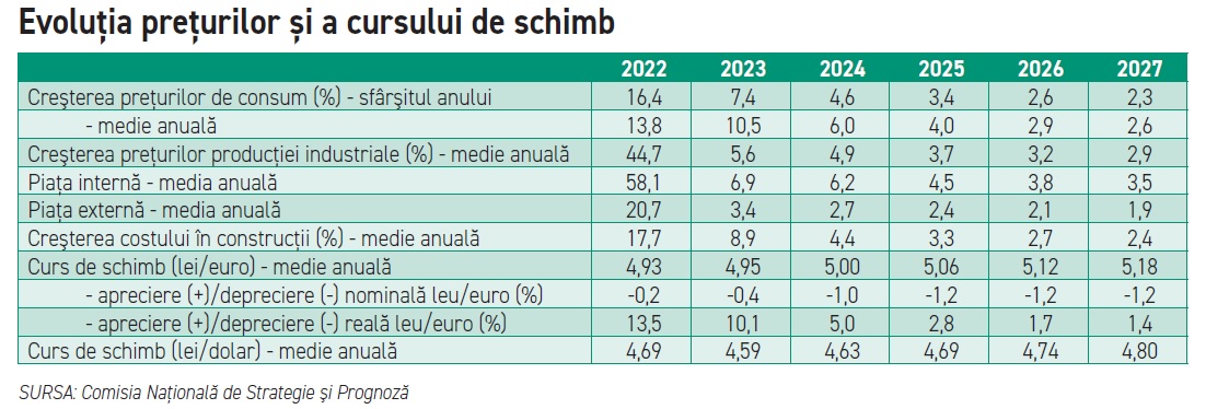 Dupa o crestere semnificativa a preturilor din sectorul de constructii in 2022 (evaluate de piata la o medie de 30% si conform CNSP, la +17,7%), indicele costului in constructii si-a temperat ascensiunea incepand din 2023, tendinta care va continua si in anii urmatori. Conform prognozei de toamna, costurile din constructii ar urma sa creasca, astfel, in perioada care urmeaza, cu +8,9% in 2023, +4,4% in 2024 si +3,3% in 2025, +2,7% in 2026 si +2,4% in 2027.