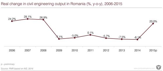In 2015, activitatea de constructii din Romania s-a accelerat semnificativ, inregistrand o crestere de 10,4% fata de nivelul din 2014, evolutia optima datorandu-se unei majorari de 20% pe segmentul ingineriei civile (ce include lucrarile de infrastructura utilitara si de transport). Potrivit unei analize realizate de compania de cercetare de piata PMR, din Polonia, dezvoltarea activitatii de inginerie civila a fost "umbrita", in mare parte, de o scadere de 5,8% inregistrata in domeniul constructiilor rezidentiale. Toate tipurile de lucrari au contribuit la evolutia optima a pietei constructiilor din Romania, in 2015. Constructiile noi au crescut cu 5,2% anul trecut, in special datorita contributiei semnificative a sectorului public, in timp ce sectorul de reparatii capitale a evoluat cu 31,8%, iar cel al lucrarilor de intretinere si reparatii curente a avansat cu 13,3%. "Credem ca factorul politic a reprezentat impulsul-cheie din spatele dinamicii negative a sectorului de constructii din Romania in perioada 2012-2014. De asemenea, consideram ca Guvernul a redus in mod deliberat fondurile alocate pentru investitii in acest interval, pentru a dispune de mai multe resurse financiare pentru cresterea beneficiilor pentru populatie, in contextul organizarii alegerilor prezidentiale din noiembrie 2014", se arata in analiza PMR.Totusi, alegerile prezidentiale au fost castigate de candidatul opozitiei, liberalul Klaus Iohannis. Coalitia aflata la guvernare si prim-ministrul social-democrat care a pierdut alegerile, au fost pregatiti, insa, sa stimuleze investitiile de capital in 2015, in special in ceea ce priveste infrastructura de transport, in scopul de a absorbi cat mai multe fonduri europene alocate Romaniei prin perioada de programare 2007-2013. "Totusi, in vederea pregatirii pentru alegerile parlamentare de la sfarsitul anului 2016, Guvernul de stanga a fost constrans sa puna in aplicare mai multe stimulente «liberale», in special in ceea ce priveste dezvoltarea infrastructurii. De asemenea, au avut loc modificari legislative menite a creste aprobarea partidului de stanga in randul alegatorilor de centru-dreapta. Mai mult, «lupta» anti-coruptie s-a adancit foarte mult in ultimii ani, iar tendinta pozitiva continua, cu scopul declarat de a-i determina pe politicienii romani sa fie mai responsabili in cheltuirea banilor publici", au mai aratat analistii polonezi. Trebuie remarcat faptul ca guvernul social-democrat a demisionat in noiembrie 2015.