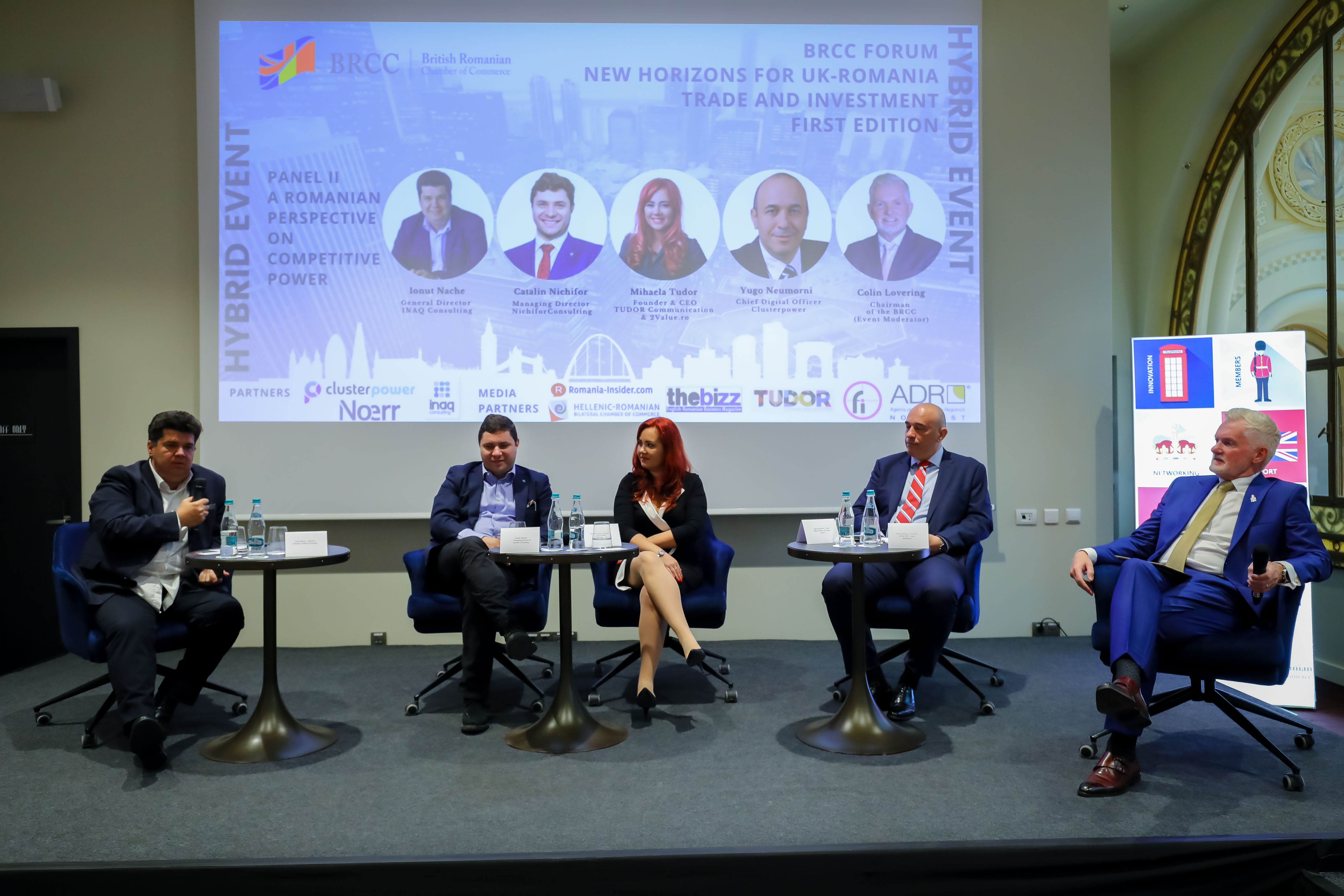„Multe afaceri din Marea Britanie sunt mari comercianti internationali, iar Romania are o pozitionare excelenta. Se afla la intersectia a 3 piete mari: UE, Orientul Mijlociu si Asia Centrala. Daca te uiti la Romania din Est, e poarta de intrare in UE. Suntem cu 6 zile pe mare mai aproape de China decat portul Amsterdam, asa ca puteti aduce marfuri din Asia mai repede. Putem avea un pret de inchiriere pentru spatii industriale de pana la 2 euro pe metru patrat, ceea ce este de necrezut. Unul dintre cele mai atractive sectoare, care contribuie foarte mult la PIB, este sectorul IT&C. Peste 6 miliarde de euro este cifra exporturilor, iar Marea Britanie este un mare consumator de servicii IT&C. Este un ecosistem foarte vibrant pentru companiile IT si start-up-uri si vad un mare potential de cooperare in acest domeniu intre Romania si Marea Britanie. Cred cu adevarat ca dezvoltarea legaturilor dintre cele 2 tari si cele 2 piete este cel mai important lucru pentru cresterea comertului si a investitiilor. Recent a fost lansat in Marea Britanie un centru de competente romanesc, care se va concentra in intregime pe oportunitatile din Romania. Va prezenta potentialul de investitie existent in Romania catre companiile britanice, va oferi sfaturi si va lucra indeaproape cu BRCC”, a conchis Bogdan Mihailescu, ministru consilier si sef al Departamentului Economic si Comercial, din cadrul Ambasadei Romaniei in Regatul Unit.