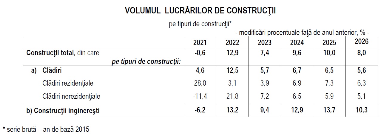 Evolutia semnificativa a sectorului de constructii este prognozata pe baza investitiilor din PNRR, dar si de masurile guvernamentale anuntate in directia majorarii investitiilor.