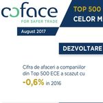In total, companiile din Top 500 ECE au generat o cifra de afaceri de 580 miliarde euro in 2016, in scadere usoara (-0,6%) fata de nivelul din 2015 si au consemnat un declin mai pronuntat al profitului net (-3,1%), pana la 26,3 miliarde euro. Totusi, conform datelor Coface, rata de ocupare a fortei de munca a luat avant, companiile din top consolidandu-si angajarile cu +3,9%, pana la 2,24 milioane de persoane.