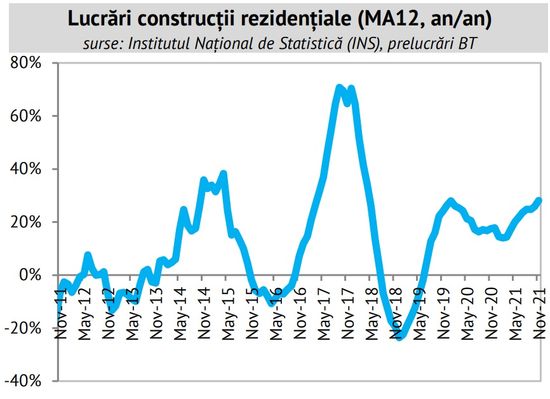 "Evolutia recenta a autorizatiilor de construire exprima premise favorabile pentru dinamica constructiilor rezidentiale din trimestrele urmatoare. In scenariul macroeconomic central BT ne asteptam ca sectorul constructiilor sa se numere printre cele mai dinamice din economia Romaniei in acest deceniu, perspectiva sustinuta de nivelul redus al costurilor reale de finantare si de implementarea programelor lansate la nivelul Uniunii Europene dupa incidenta crizei sanitare (Next Generation si cadrul financiar multianual 2021-2027)", subliniaza dr. Andrei Radulescu.