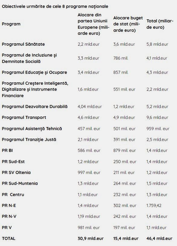 "Aprobarea tuturor programelor aferente Politicii de Coeziune 2021-2027 inseamna dezvoltarea tarii in lumina obiectivelor europene de politica si in contextul provocarilor curente cu care ne confruntam pe scena economica, geopolitica si sociala. Este o reusita si din perspectiva faptului ca, daca nu reuseam aprobarea tuturor programelor anul acesta, am fi pierdut 5,2 miliarde euro. Procesul a fost unul complicat si de durata. Imi aduc aminte ca in primul mandat am pus in consultare primele forme ale programelor operationale, am lansat dezbaterile publice referitoare la continutul acestora si am inceput negocierile cu Comisia Europeana. Iata ca dupa 3 ani de atunci, acum putem marca un moment inseamna ce inseamna validarea celor 46 miliarde euro care ne vor aduce investitii masive in spitale mai sigure, retele strategice de transport, modernizarea infrastructurii de apa si canalizare si sprijin pentru mediul de afaceri. Putem da oficial startul descentralizarii dezvoltarii regionale asteptata de primari, autoritati locale si judetene, dar si de milioane de oameni care vor ca viata lor sa fie mai buna", a declarat ministrul Investitiilor si Fondurilor Europene, Marcel Bolos.