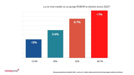 Potrivit rezultatelor Barometrului Moneycorp editia a 4-a, cei mai multi dintre investitori (34,7%) estimeaza, de exemplu, ca indicele ROBOR va trece de nivelul de 7% pana la finele anului, iar 32% il vad intre 6 si 7%.