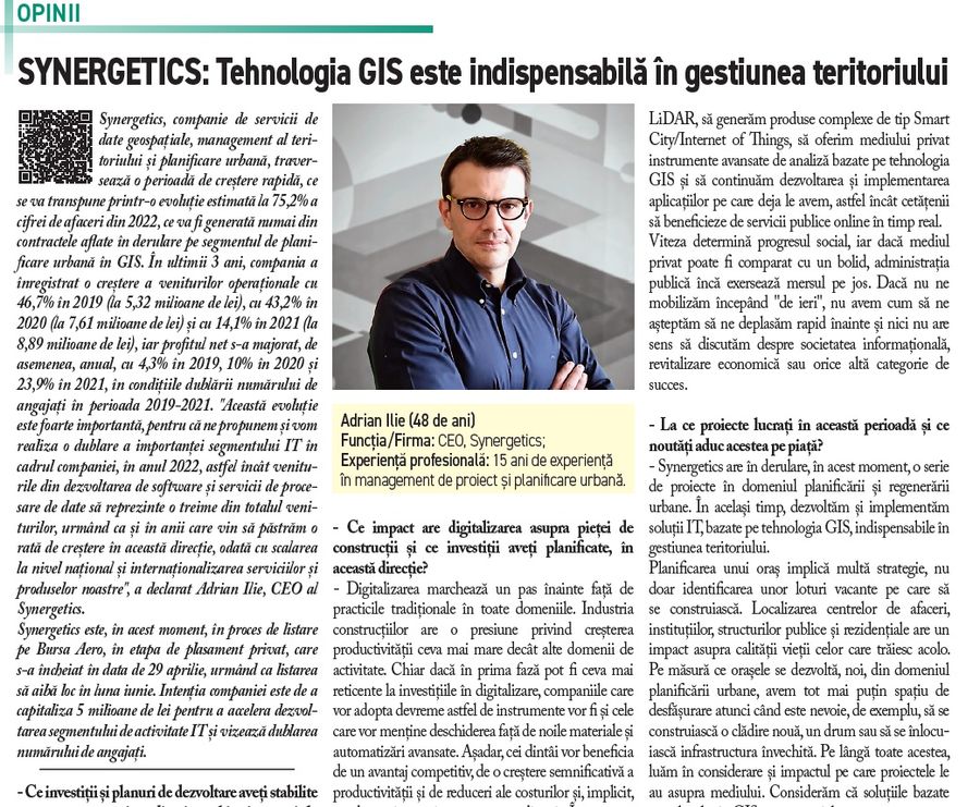 • Adrian Ilie, SYNERGETICS: Tehnologia GIS este indispensabila in gestiunea teritoriului