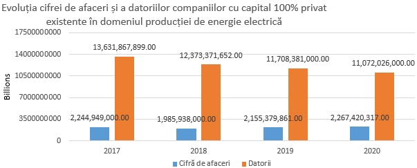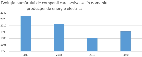 Numarul de companii care activeaza pe piata productiei de energie electrica si care au depus situatiile financiare anuale este relativ constant - acesta variind extrem de putin in ultimii 4 ani. Astfel, daca in anul 2017 existau pe piata 2.033 de astfel de companii, in anul 2020 numarul acestora a fost de 1.997 de companii. Dintre acestea, aproximativ 1% sunt companiile care au in structura proprie statul roman.