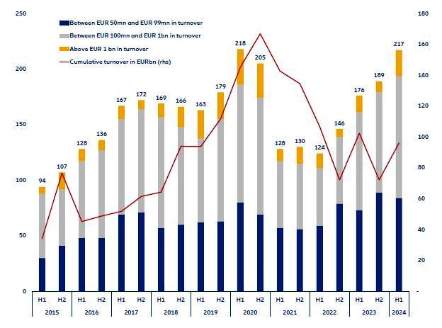 Figura 2: Insolvente majore, cifre semestriale, in functie de cifra de afaceri