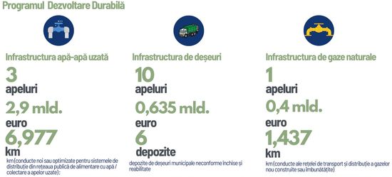 Printre obiectivele urmarite la nivel national in urma lansarii acestor apeluri se numara 632 km de drumuri noi sau reabilitate, 6.977 km conducte noi sau optimizate pentru reteaua de apa si canalizare, 7 spitale judetene noi sau reabilitate si sali noi de clasa pentru 128.000 de elevi.