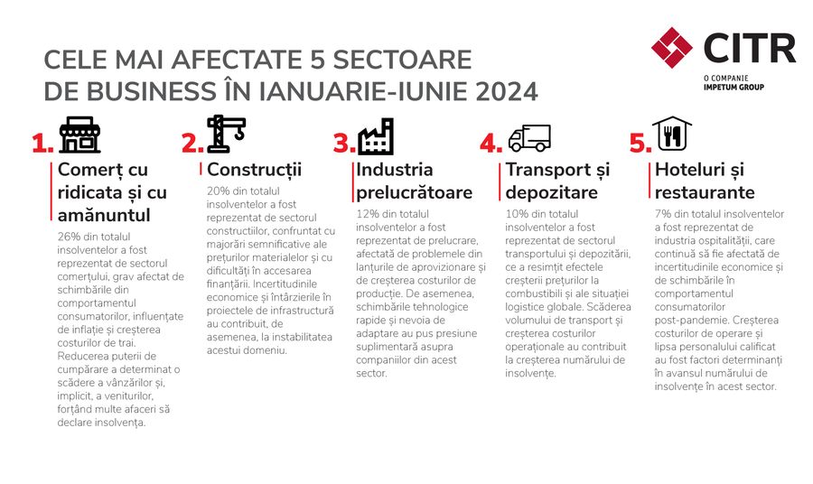 Care au fost sectoarele de business cele mai afectate in ianuarie-iunie 2024?