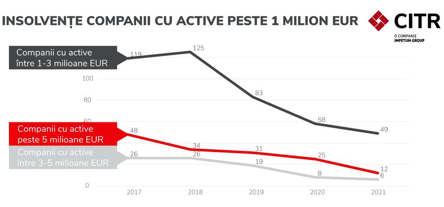 - Numarul companiilor care intra in procedura de insolventa nu s-a schimbat fundamental in ultimii ani, iar numarul companiilor de impact, cu active de peste un milion de euro, care au intrat in insolventa reprezinta un procent nesemnificativ fata de cele care noi, ca experti, consideram ca ar avea nevoie de ajutor. Conform studiului CITR de la finalul anului trecut, in Romania au fost identificate 6.654 companii de impact, cu active de peste un milion de euro, aflate in stare de insolventa iminenta. Dintre acestea, doar 32 au intrat in procedura de insolventa in primele sase luni ale anului 2022, iar asta ne arata, in continuare, ca nu ne indreptam catre o insanatosire a mediului economic. In primele 6 luni ale anului 2022, un numar de 670 companii din constructii au intrat in insolventa, in crestere cu 31,63% fata de perioada similara a anului trecut.