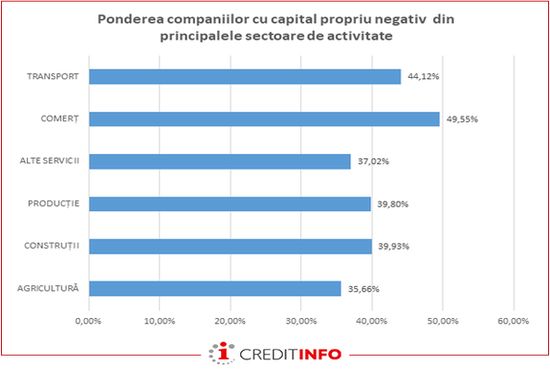 Aproape 40% dintre companiile cu activitati in sectorul constructiilor din Romania au capital propriu negativ, segmentul fiind printre cele mai riscante domenii ale economiei autohtone, alaturi de comert si transporturi, potrivit concluziilor unui studiu realizat de Creditinfo Romania, companie specializata in colectarea si furnizarea de informatii de management al riscului. Analiza a fost realizata prin compararea datelor financiare ale companiilor din ultimii doi ani fiscali incheiati (2015, 2016)."Capitalul propriu negativ este unul dintre primele simptome care indica riscul ridicat de intrare in insolventa al unei companii. Din aceasta cauza, societatile cu capital propriu negativ sunt riscante pentru creditori, acestia putand ramane cu creante a caror recuperare este de multe ori dificila", a declarat Aurimas Kačinskas, CEO al Creditinfo Romania.
