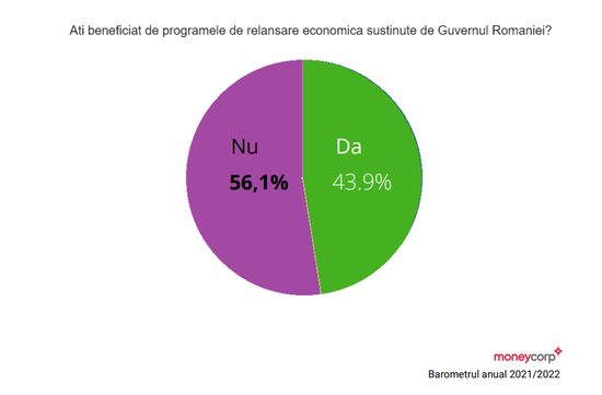 In acest context, 46,3% dintre cei chestionati au apelat la programele de relansare economica propuse de autoritati, iar 43,9% dintre acestia au remarcat un impact pozitiv.