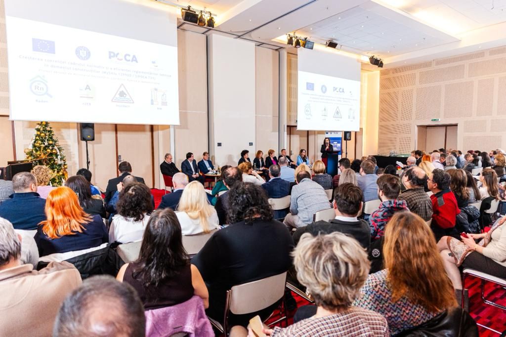 Ministerul Dezvoltarii, Lucrarilor Publice si Administratiei a organizat conferinta finala a proiectului “Cresterea coerentei cadrului normativ si a eficientei reglementarilor tehnice in domeniul constructiilor” (cod MySMIS 129900/SIPOCA 731).Implementarea proiectului contribuie la optimizarea fondului de reglementari tehnice si dezvoltarea unor instrumente metodologice, pentru asigurarea proiectarii de calitate in domeniul ingineriei si arhitecturii si indeplinirii angajamentelor asumate la nivel guvernamental, inclusiv din perspectiva transpunerii si implementarii in legislatia nationala a actelor comunitare in domeniul constructiilor.