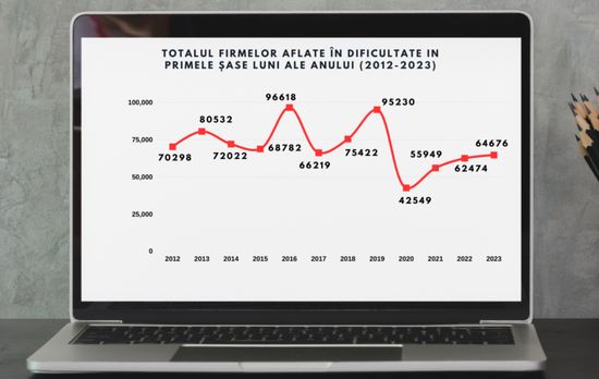 Pe ansamblul primei jumatati a anului, statisticile indica un numar de 64.676 de firme in dificultate (aflate in diverse stadii de insolventa, radiere, suspendare a activitatii sau dizolvate), un record al ultimilor patru ani.
