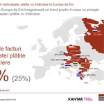 In ceea ce priveste viitorul, potrivit studiului EOS, companiile din Romania tind sa fie mai optimiste decat erau anul trecut, insa raman printre cele mai sceptice din toate tarile Europei de Est atunci cand se refera la tendintele in comportamentul de plata al clientilor lor. Astfel, 20% dintre respondenti spera la o imbunatatire a comportamentului de plata in urmatorii doi ani, comparativ cu 16% in 2017. In ceea ce priveste facturile neplatite, nivelul acestora ramane si in acest an acelasi ca in 2017, respectiv 4%, in timp ce nivelul facturilor platite cu intarziere in acest an a ajuns la 22%, cu un punct procentual mai putin decat in 2017.