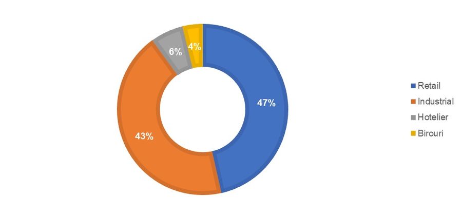 Sectorul de retail a atras 47% din volumul investitional, in timp ce sectorul logistic a avut o cota de 43%. Sectorul hotelier si cel de birouri au avut cote de 6%, respectiv 4%.