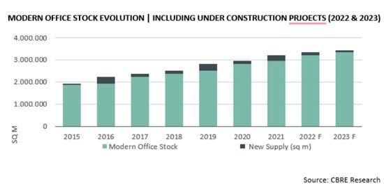 Stocul de birouri moderne din Bucuresti a ajuns la 3,30 milioane mp la sfarsitul primelor sase luni din 2022 in conditiile in care au fost livrate patru proiecte de birouri, cu aproximativ 100.000 de mp inchiriabili. Zona Centru-Vest a orasului beneficiaza de aproape 60% din noile suprafete, prin finalizarea a doua proiecte – Sema Park II - cladirea Oslo & Londra (31.500 mp inchiriabili) si AFI Tech Park 2 (24.500 mp inchiriabili). In acelasi timp, zonele Centru si Nord-Vest includ doua noi livrari, Tandem si prima faza a @Expo.Mai mult, inca 41.400 mp, in doua noi cladiri, vor fi adaugati stocului modern de spatii de birouri pana la sfarsitul anului. 83% din suprafata totala care urmeaza sa fie livrata va fi adaugata in zona Centru-Vest, un singur imobil, One Cotroceni – Faza 2, avand o suprafata de 34.500 mp. Restul de 17% este revendicat de zona Centrala, in care va fi lansata cladirea de birouri Tudor Arghezi, un proiect inchiriabil de 7.000 mp. Totodata, stocul modern de spatii de birouri al Capitalei se va majora cu inca cca. 94.000 mp pana la sfarsitul anului 2023.