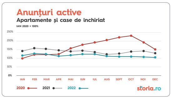 Piata chiriilor a devenit tot mai efervescentaOdata cu debutul pandemiei si al starii de urgenta din anul 2020, s-a remarcat un numar tot mai mare de anunturi active in categoria de chirii, cu un varf atins in luna octombrie, atunci cand climatul era unul instabil, iar studentii nu s-au mai intors la facultate la fel ca in anii anteriori.