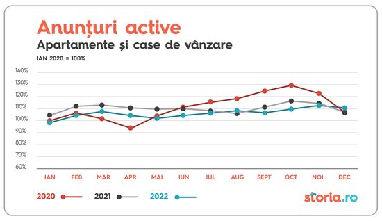 Dupa acest moment a urmat o scadere consecventa a numarului mediu de anunturi active, desi numarul de insertii a ramas stabil, astfel ca in noiembrie 2022 a ajuns cu 25% mai mic decat in noiembrie 2021, potrivit datelor Storia.ro.