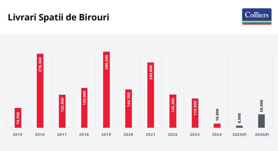 Daca in 2023 s-au livrat doar 110.000 mp de spatii de birouri, ceea ce constituie cel mai scazut nivel din 2016 pana in prezent, anul 2024 se va incheia cu un singur proiect de birouri finalizat. Astfel, AFI Loft, dezvoltat de AFI, va adauga 16.000 mp la stocul de birouri din Bucuresti, potrivit datelor furnizate de Daniela Popescu, Director Tenant Services & Workplace Advisory Office 360, in cadrul Colliers Romania. Incepand cu 2026, insa, piata spatiilor de birouri va fi martora la adaugarea de noi proiecte. Printre acestea se afla ONE Technology District, un proiect built-to-suit de 20.000 mp, destinat exclusiv companiei Infineon, si proiectul Arc, demarat de PPF Real Estate, care va oferi 30.000 mp de spatii de birouri inchiriabile, precum si a doua faza a proiectului Timpuri Noi Square, dezvoltat de Vastint, care va adauga aproximativ 50.000 mp inchiriabili. In plus, incepand cu 2027, stocul de birouri din Bucuresti ar putea creste cu inca 400.000 mp, datorita proiectelor aflate in diverse etape de autorizare si planificare, in functie de durata procesului de aprobare.Daca toate aceste obiective se vor materializa, consultanta Colliers se asteapta ca piata de birouri sa atinga pragul de 4 milioane de metri patrati catre sfarsitul acestui deceniu